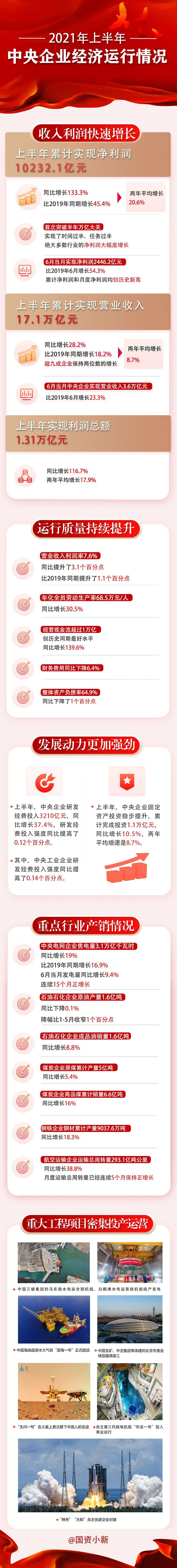 一图读懂2021年上半年中央企业经济运行情况